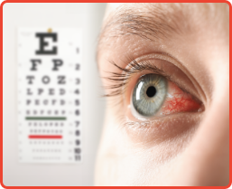 Težave pri videnju podrobnosti, zlasti na daljavo, težave pri branju in izvajanju natančnih aktivnosti. Bolečina, utrujenost in rdeče oči.